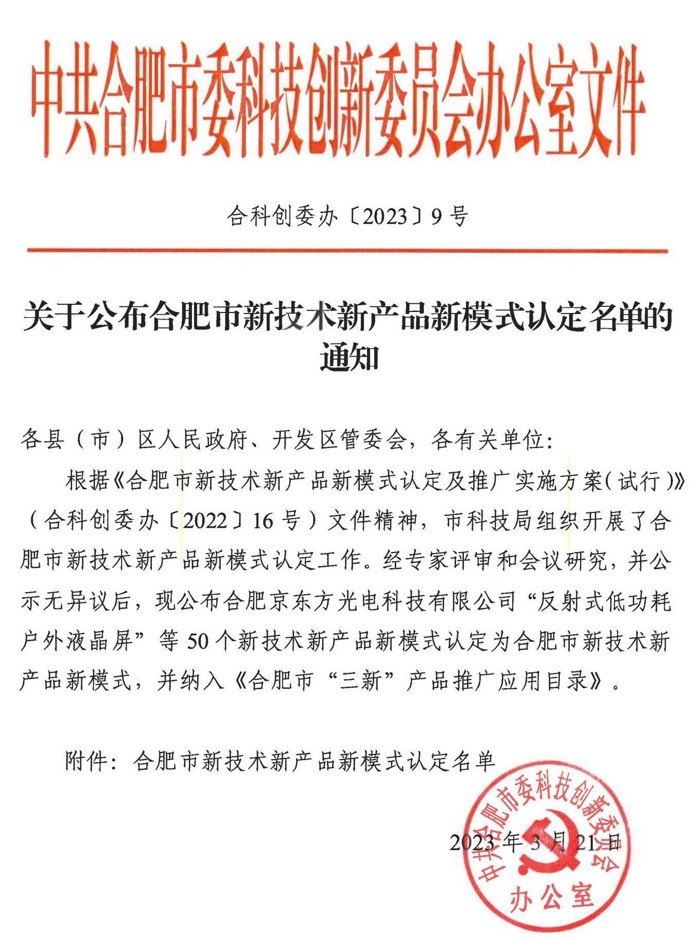 據悉,合肥市“三新”產品認定即為新技術新產品新模式,是指在合肥市研發、生產,經過創新,主要技術指標國內領先、國際先進或能夠替代進口保障供應鏈安全,產權明晰,質量可靠,市場前景較好的產品。